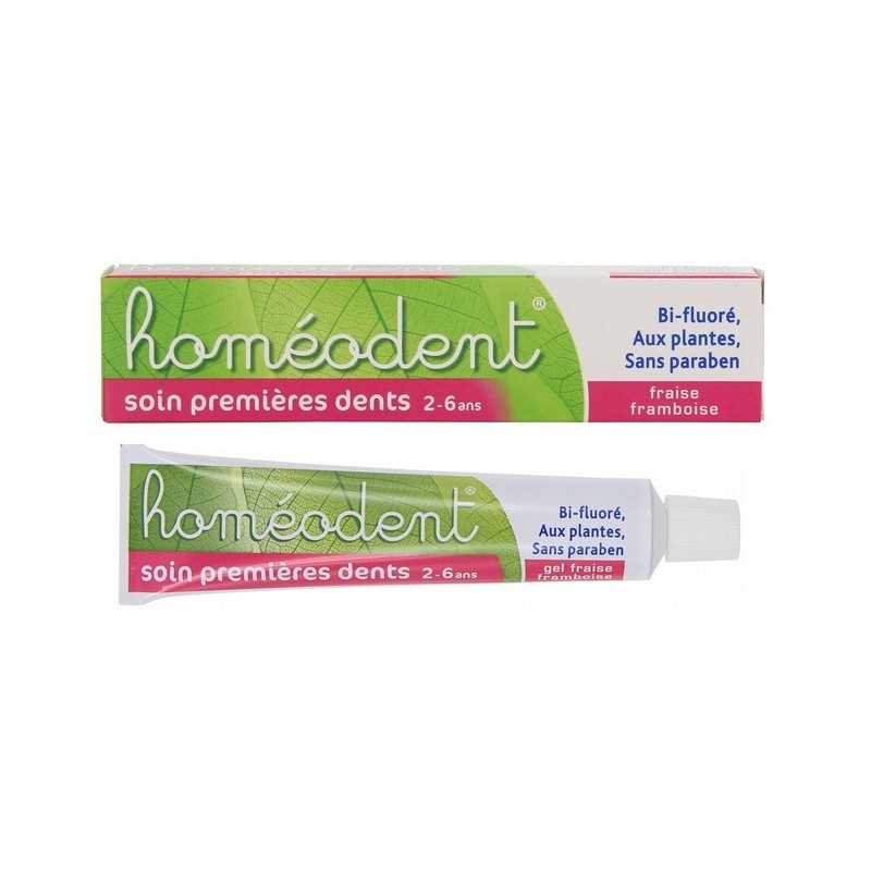 • Boiron Homéodent Soin Premières Dents 2-6 ans nettoie en douceur les dents des 2-6 ans, tout en respectant l'émail, plus lisse et plus fragile chez eux. Sa texture gel et son arôme fraise-framboise vous aideront à leur transmettre de bonnes habitudes.
