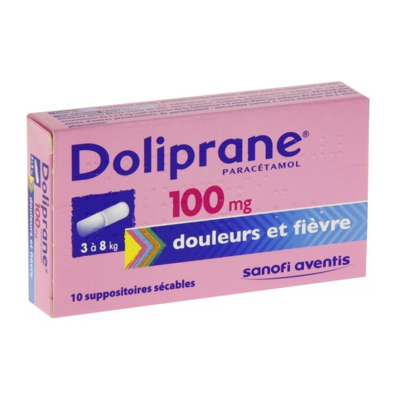 Doliprane 100 mg 10 Suppositoires est médicament qui contient du paracétamol. Il est indiqué en cas de douleur et/ou fièvre telles que maux de tête, états grippaux, douleurs dentaires, courbatures.