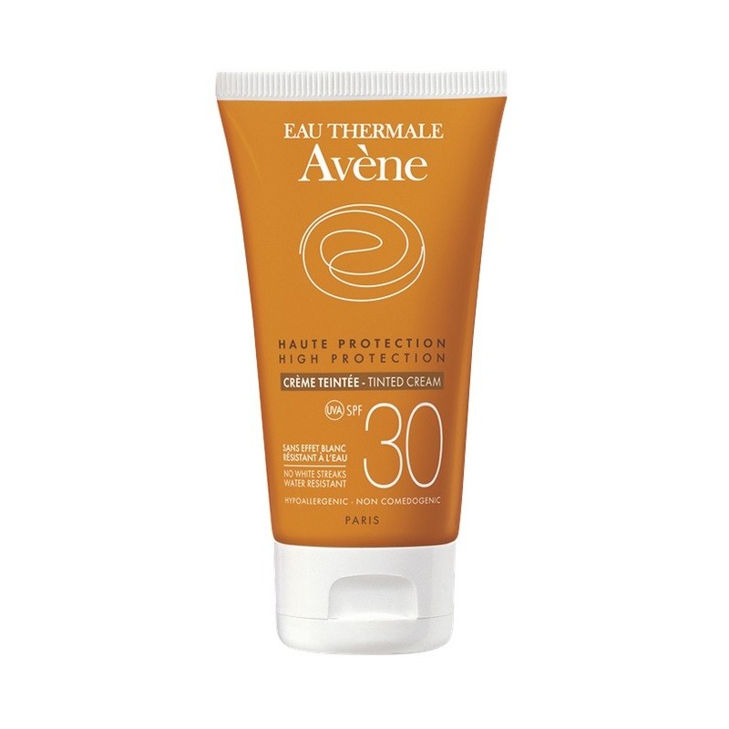 Avène Solaire Crème Teintée SPF 30 50 ml. Teint unifié. Haute protection solaire de la peau sensible du visage. Elle est efficace contre l'ensemble du rayonnement solaire (UVB-UVA longs et courts). Résistant à l’eau. Photostable. Sans paraben.