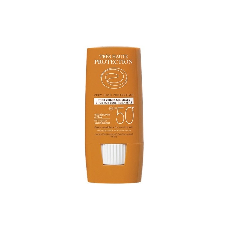 Avène Solaire Stick Zones Sensibles SPF 50+ 10 g. Transparent à l'application. Très haute protection solaire des zones sensibles localisées et des cicatrices. Très résistant à l’eau. Large protection UVB-UVA. Photostable. Sans paraben.