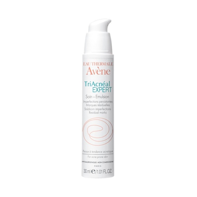 - Après 6 semaines d'utilisation, Avène TriAcnéal Expert réduit de façon significative le nombre de boutons et de points noirs (-45,3%), ainsi l'apparence des marques résiduelles (70% d'efficacité).