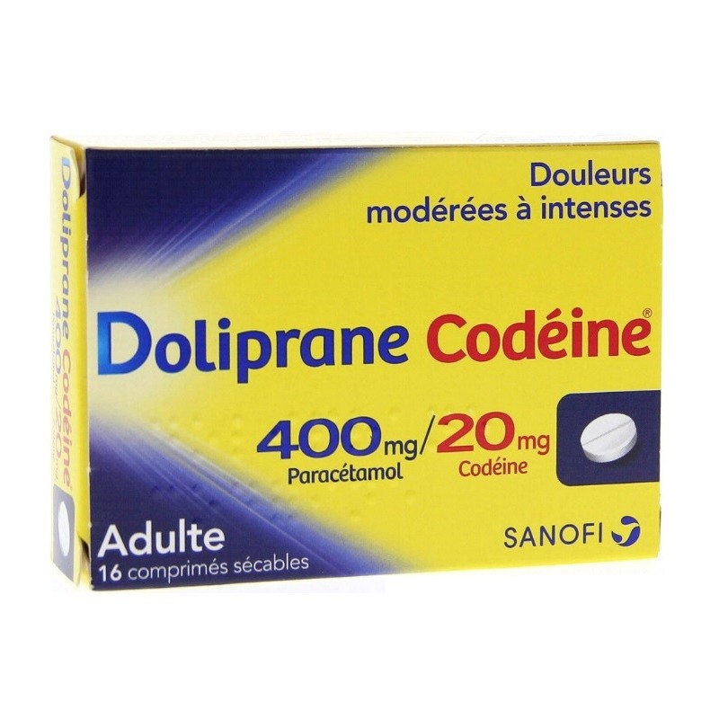 Doliprane Codéine 400 mg Paracétamol / 20 mg Codéine 16 comprimés est un médicament qui contient du paracétamol et de la codéine. Il est réservé à l'enfant à partir de 6 ans. Il est indiqué dans le traitement des douleurs modérées à intenses qui ne sont pas soulagées par l'aspirine, le paracétamol ou l'ibuprofène utilisé seul.
