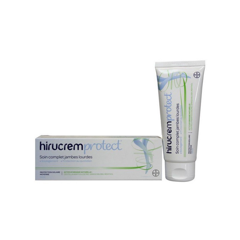 Hirucremprotect 100 G est une crème protect pour soin des jambes lourdes, formulée avec des extraits végétaux dont l'hydrocotyle et le ginkgo, des huiles végétales, du menthol et de l'escine, permettant d'apaiser la sensation de jambes lourdes, d'apporter un effet fraîcheur immédiat, d'aider à décongestionner les jambes gonflées pour atténuer l'apparition des petites veines, de renforcer la protection des veines superficielles, de stimuler la circulation veineuse, tout en protégeant contre les rayons solaires quotidiens.