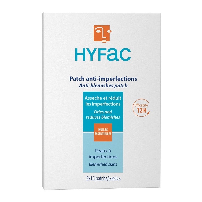 Hyfac Patch Anti-Imperfections asse`che et diminue le bouton inflammatoire. Il apaise les irritations grâce à ses huiles essentielles (romarin, citron, menthe…), et est totalement invisible. Ses actifs sont diffusés progressivement pour une action de 8 à 12h. L’avantage est qu’il n’y a aucune manipulation à faire sur les boutons, évitant ainsi le risque de cicatrice.