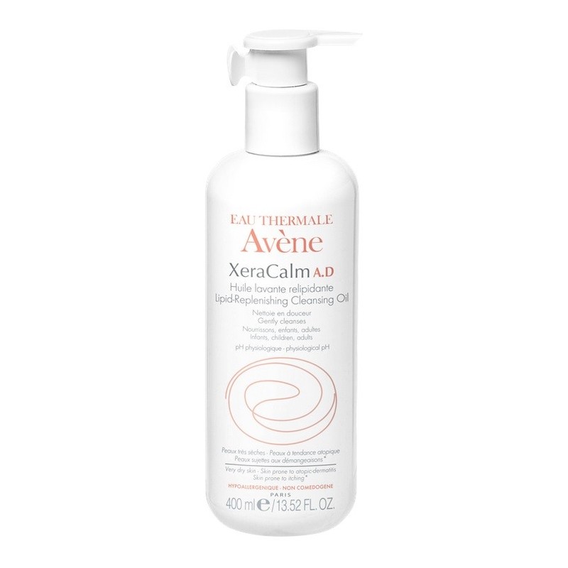 Avène XeraCalm A.D Huile Lavante Relipidante 400 ml est spécifiquement formulée pour nettoyer en douceur.