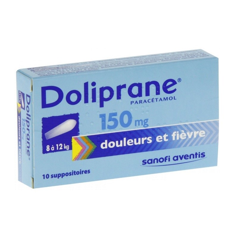 Doliprane 150 mg 10 Suppositoires est médicament qui contient du paracétamol. Il est indiqué en cas de douleur et/ou fièvre telles que maux de tête, états grippaux, douleurs dentaires, courbatures.