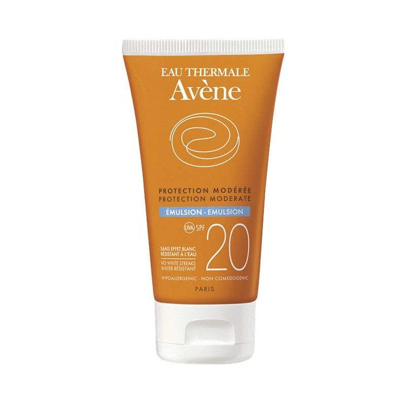 Avène Solaire Émulsion SPF 20 50 ml protège et hydrate les peaux claires à mates.