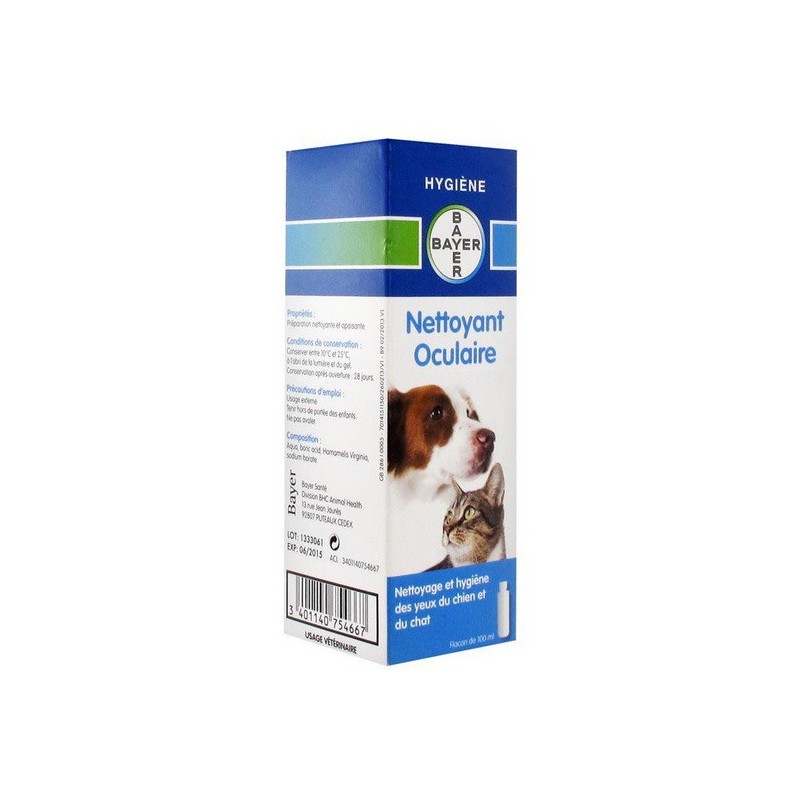 Bayer Nettoyant Oculaire 100 ml est une préparation nettoyante et apaisante spécialement conçue pour l'hygiène oculaire de votre animal.