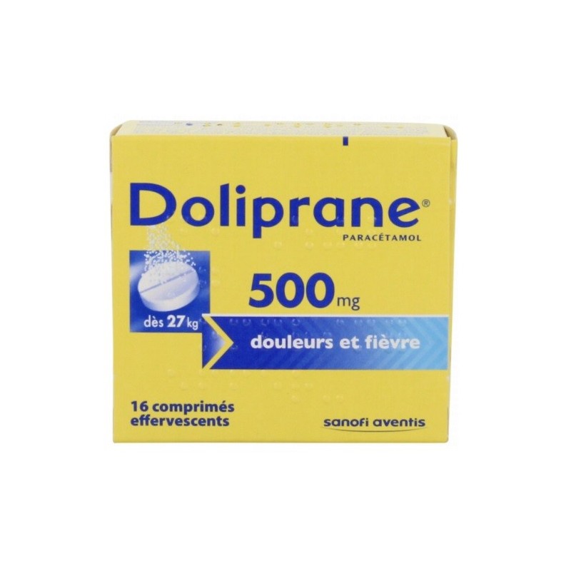 Doliprane 500 mg 16 Comprimés Effervescents est un médicament. Il est indiqué en cas de douleur et/ou fièvre telles que maux de tête, états grippaux, douleurs dentaires, courbatures, règles douloureuses.