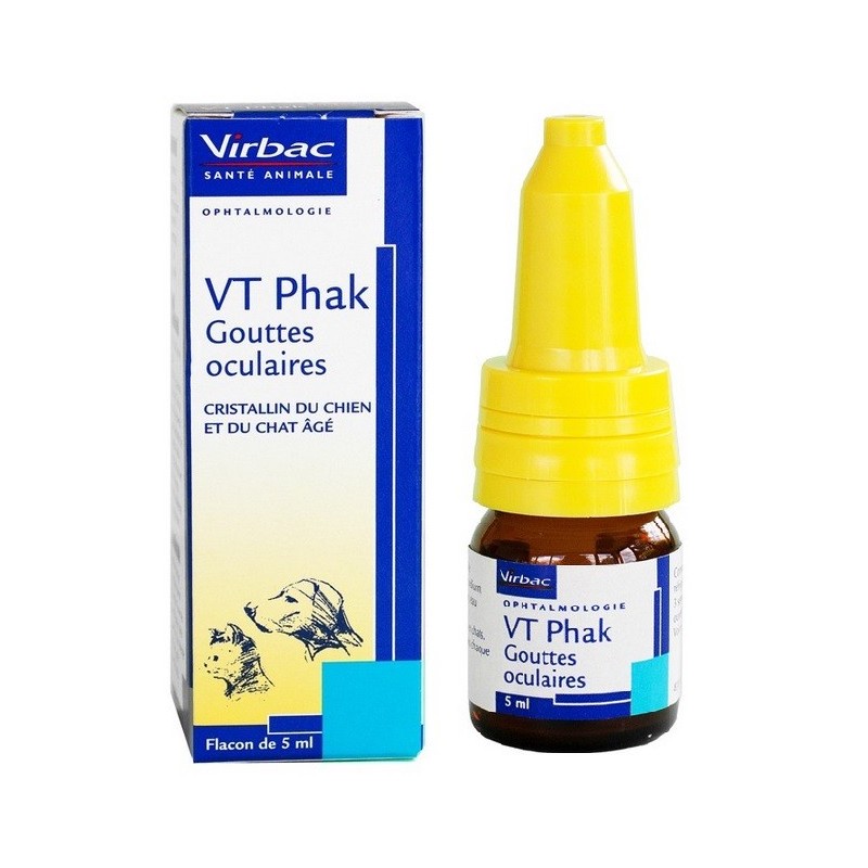 Virbac VT Phak Gouttes Oculaires 5 ml est un collyre contre le vieillissement du cristallin des chiens et chats.